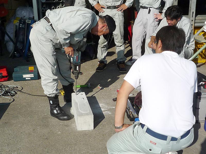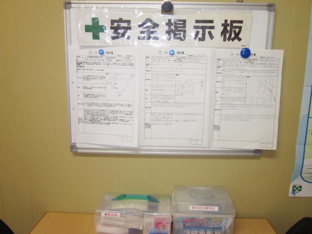 弊社では、お客様に満足いただけるよう安全・品質に取り組んでいます。着工前の送り出し教育・作業前の危険予知活動で、安全作業に努めています。